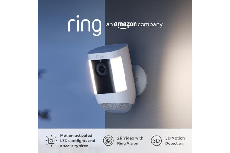 Ring Spotlight Cam Pro Battery | 2K Video with Ring Vision, 3D Motion Detection, Bird's Eye View, LED Spotlights, DIY installation | 30-day free trial of Ring Subscription