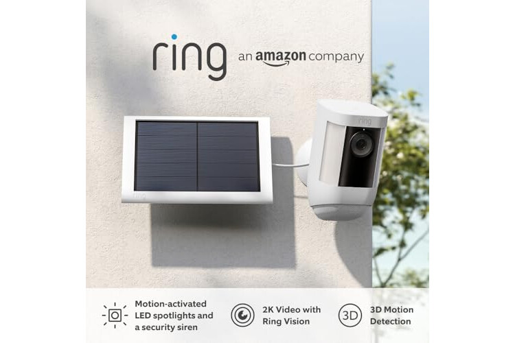 Ring Spotlight Cam Pro Solar | 2K Video with Ring Vision, 3D Motion Detection, Bird's Eye View, LED Spotlights, DIY installation | With 30-day free trial of Ring Subscription |2 Cameras