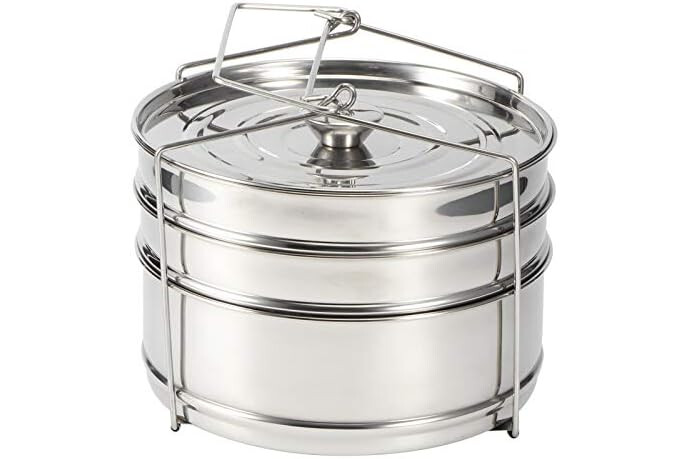 ??【MULTI-FUNCTION】3 tier stackable pans to cook variety of food simultaneously in any pressure cooker or Pot. Great for steaming rice, vegetables, meat, fish or soup. Also It can be used as a dessert pan to make cheesecakes or make lasagna or vegetable steamer.