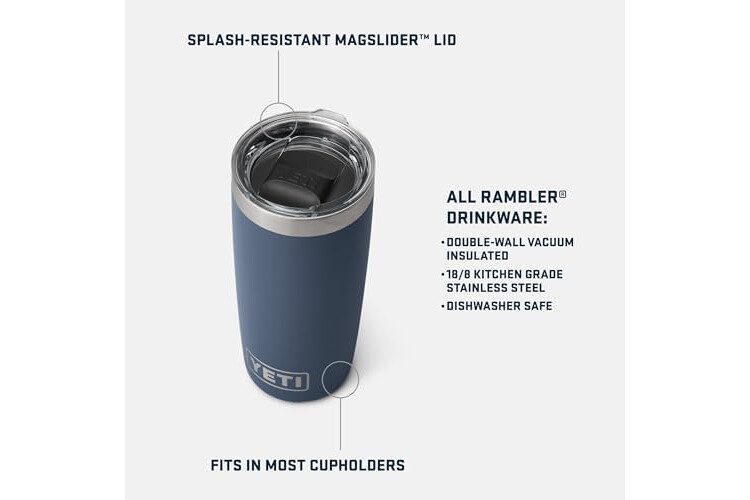MAGSLIDER LID: These Ramblers come standard with the YETI MagSlider Lid, the only drink lid that uses the power of magnets to keep your water, beer, or favourite drink on lock. The Magslider Lid is not Leakproof & will not prevent spills.