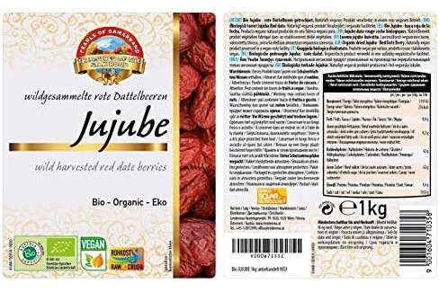 Organic Jujube 1kg – Sun-Dried, Raw-Food, Vegan & Untreated Red Date Berries