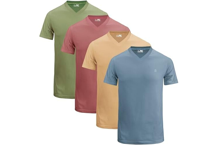 Pack of 4 Mens Short Sleeve V-Neck T-Shirts, Casual Vee Neck Tops