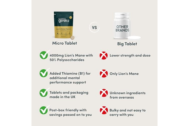 Easy to Swallow with No Aftertaste & Delightful Natural Aroma - Lion's Mane Focus+ tablets are 10mm in diameter, half the size of capsules, whilst delivering a super strong 4000mg of Lion's Mane. Every time you take our tablets, you will be greeted by a burst of natural Lion's Mane Mushrooms - you won't be disappointed.