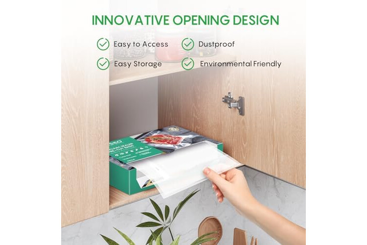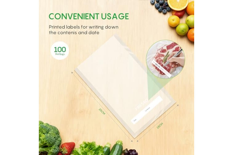EASY TO USE: Come with 100pcs Pre-cut food vacuum bags, 15cm width and 25cm length. Stylish gift box with convenient extractable design allows easily taking out the vacuum sealer bags, no rolls to cut, together with 20pcs of small stickers inside the box for you to paste and record the storing time of the food