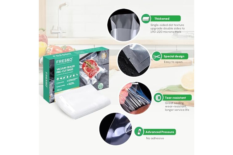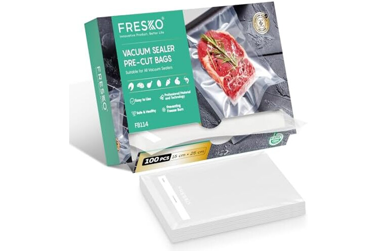 FRESKO Vacuum Sealer Bags 15x25cm 100 Count,Textured Vacuum Food Sealer Bag,Thick Embossed PreCut Bags | BPA Free | for Sous Vide Cooking and Food Storage Withstands Freezing, Boiling and Microwaving