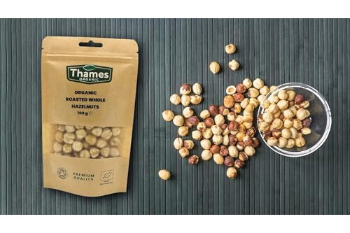 Organic Roasted Hazelnuts - Whole Hazelnuts, No Additives or Preservatives - Vegan, GMO-Free, Certified Organic - Delicious and Nutritious Snack - Thames Organic 250g