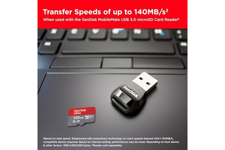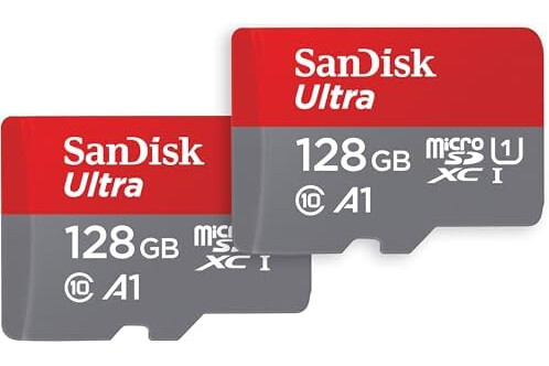 SanDisk 128GB Ultra microSDXC card + SD adapter up to 140 MB/s with A1 App Performance UHS-I Class 10 U1 - Twin Pack