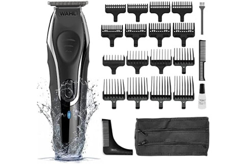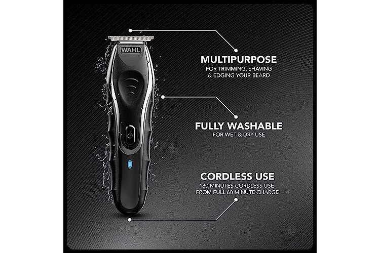 Wahl Aqua Blade Stubble & Beard Trimmer for Men – Ultra‑Close Cutting, 16 Guide Combs (0.2–25mm), Wet & Dry, Rechargeable, 180‑Min Cordless Use, Stainless‑Steel Blade, Fully Washable