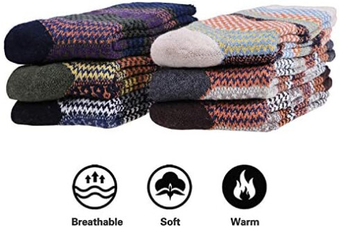 Justay 6 Pairs Mens Wool Socks Thermal Socks Warm Winter Work Socks Soft and Breathable Running Hiking Socks