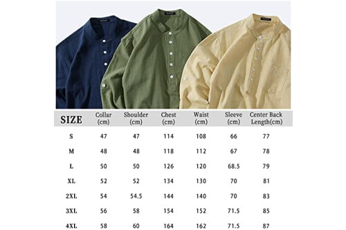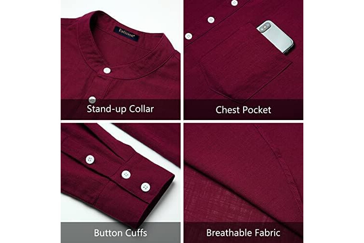 Enlision Mens Casual Cotton Linen Shirt Long Sleeve Button Down Summer Lightweight Henley Shirt Tops