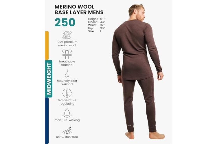 Merino.tech Merino Wool Base Layer Men Set - Merino Thermal Underwear Mens Top and Bottom Lightweight, Midweight, Heavyweight
