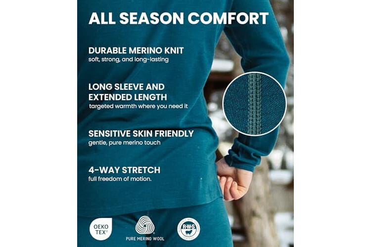 Merino.tech Merino Wool Base Layer Men Set - Merino Thermal Underwear Mens Top and Bottom Lightweight, Midweight, Heavyweight