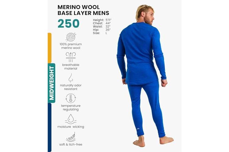 Merino.tech Merino Wool Base Layer Men Set - Merino Thermal Underwear Mens Top and Bottom Lightweight, Midweight, Heavyweight
