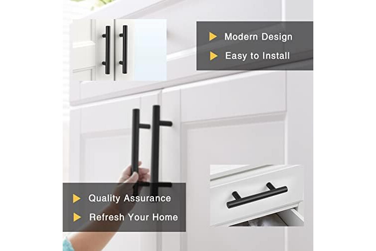 😄MATERIAL:Our kitchen cabinet pulls are made of 201 stainless steel with black finished,hollow but very sturdy.Good waterproof function and corrosion resistance,there is no need to worry about bending and deforming.