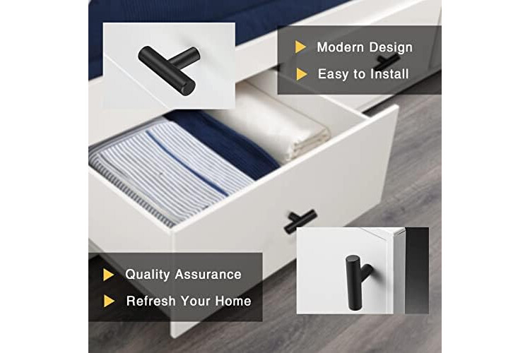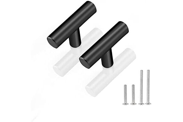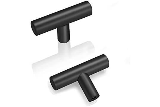 PinLin 20 Pack Kitchen Door Handles Single Hole Flat Black Cabinet Handles Stainless Steel Cupboard T Bar Handle (Screws Included)