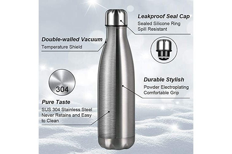 【LEAK PROOF】The travel water bottle come with a leak proof and insulated cap. The stainless steel lid can prevent accidental spill. This multifunctional water bottle is easy to carry to anywhere you go.