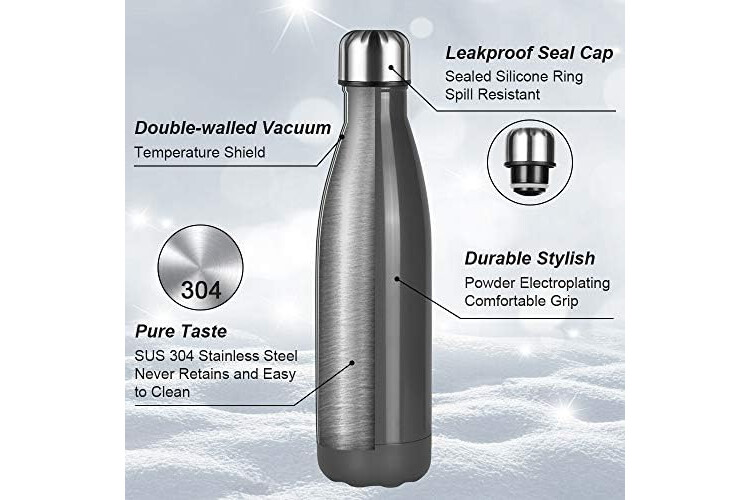 【LEAK PROOF】The travel water bottle come with a leak proof and insulated cap. The stainless steel lid can prevent accidental spill. This multifunctional water bottle is easy to carry to anywhere you go.