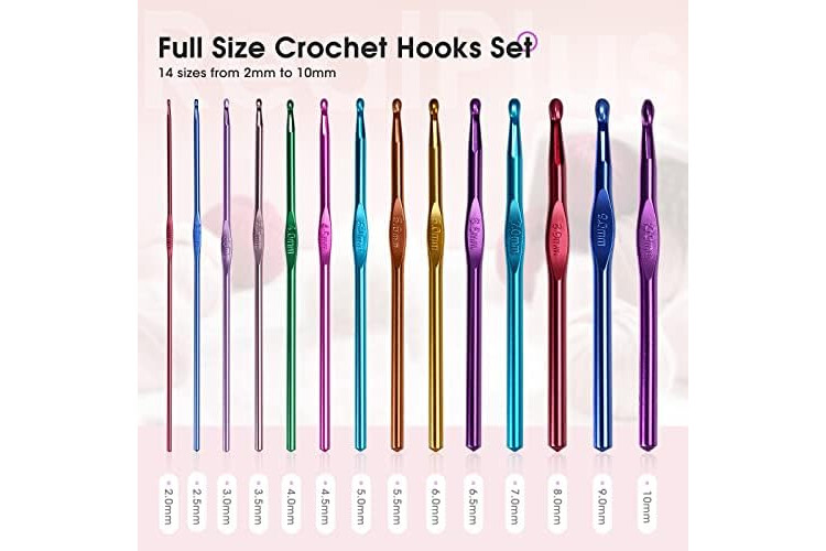 🧶【Full Size Set】: includes full size set (2.0mm / 2.5mm / 3.0mm / 3.5mm / 4.0mm / 4.5mm / 5.0mm / 5.5mm / 6.0mm / 6.5mm / 7.0mm / 8.0mm / 9.0mm / 10.0mm) to meet your different demands in crocheting.The hook shank is clearly marked with size markings for quick identification and selection.