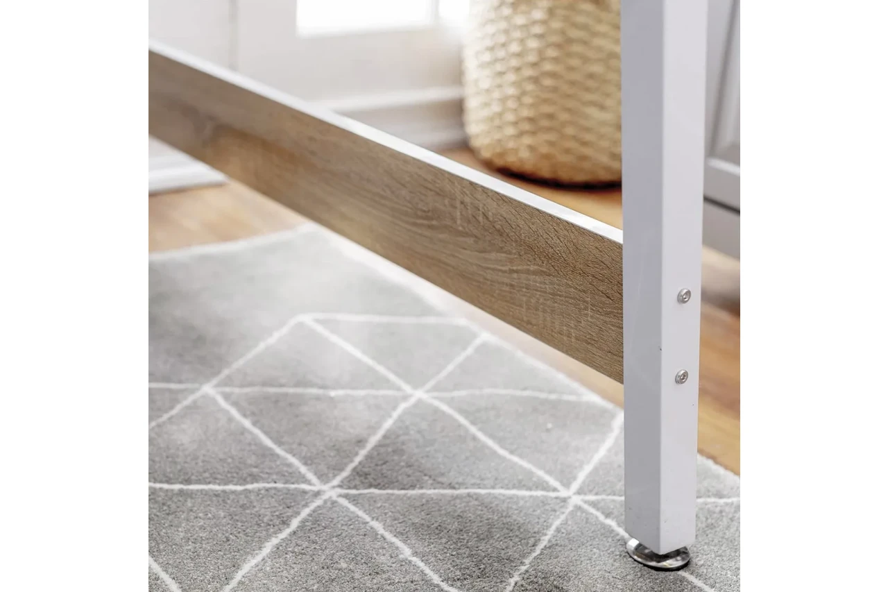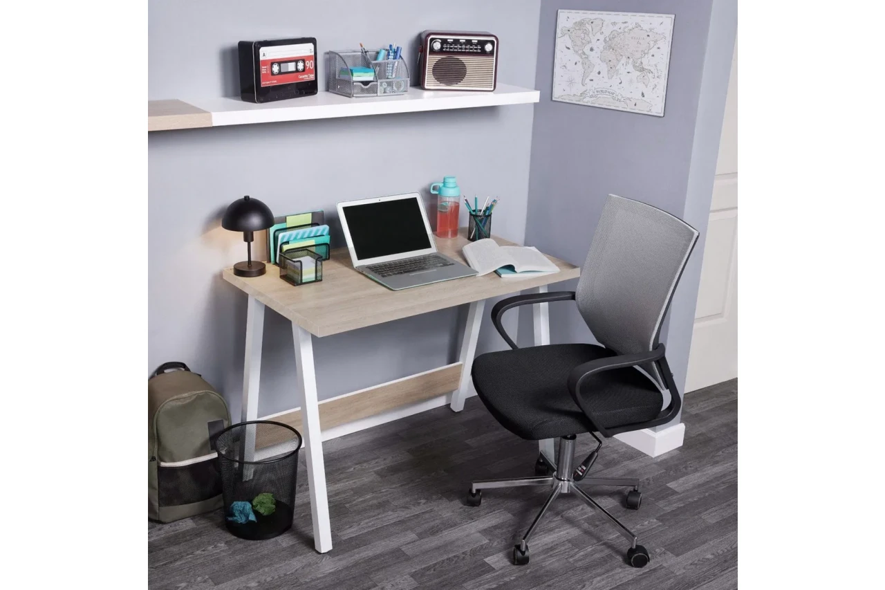 El escritorio de dimensiones 100x58x75 cm en blanco y oak, es el aliado perfecto para aquellos que desean agregar un escritorio compacto y estilizado a su habitación sin comprometer el espacio ni la armonía decorativa. Además, es una excelente opción para la habitación de tus hijos, brindándoles un espacio adecuado para realizar sus tareas sin ocupar demasiado espacio.