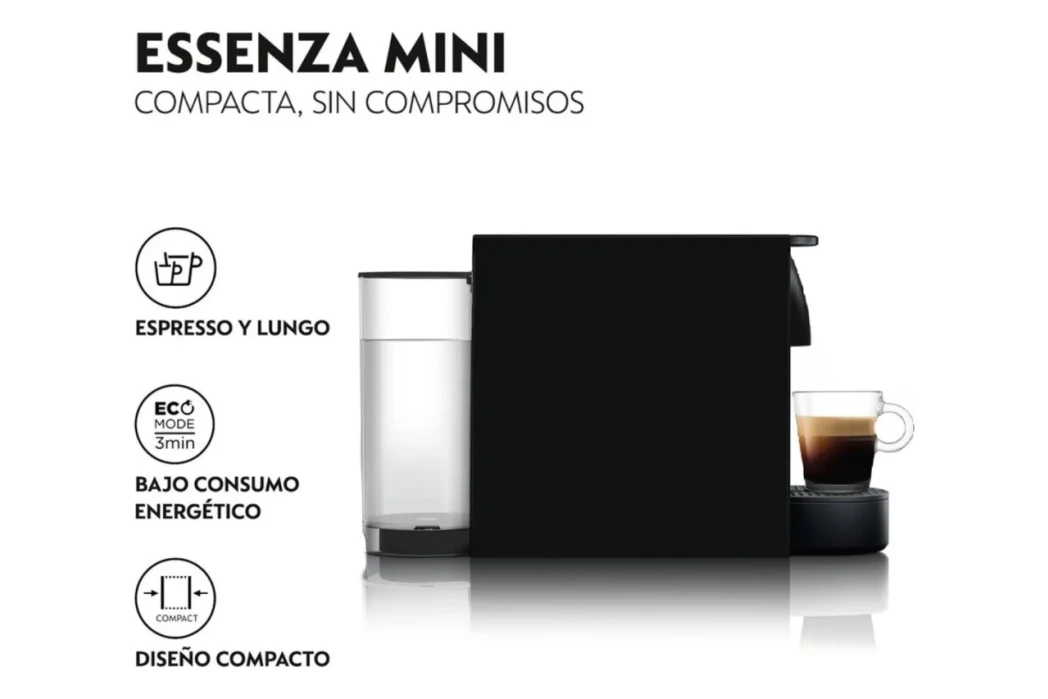 Essenza Mini cuenta con un modo ecológico para bajo consumo después de 3 minutos y una función de apagado automático tras 9 minutos de inactividad, reduciendo el consumo de energía.