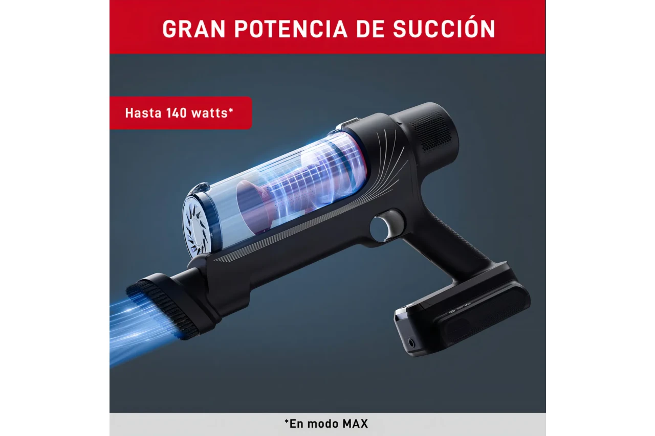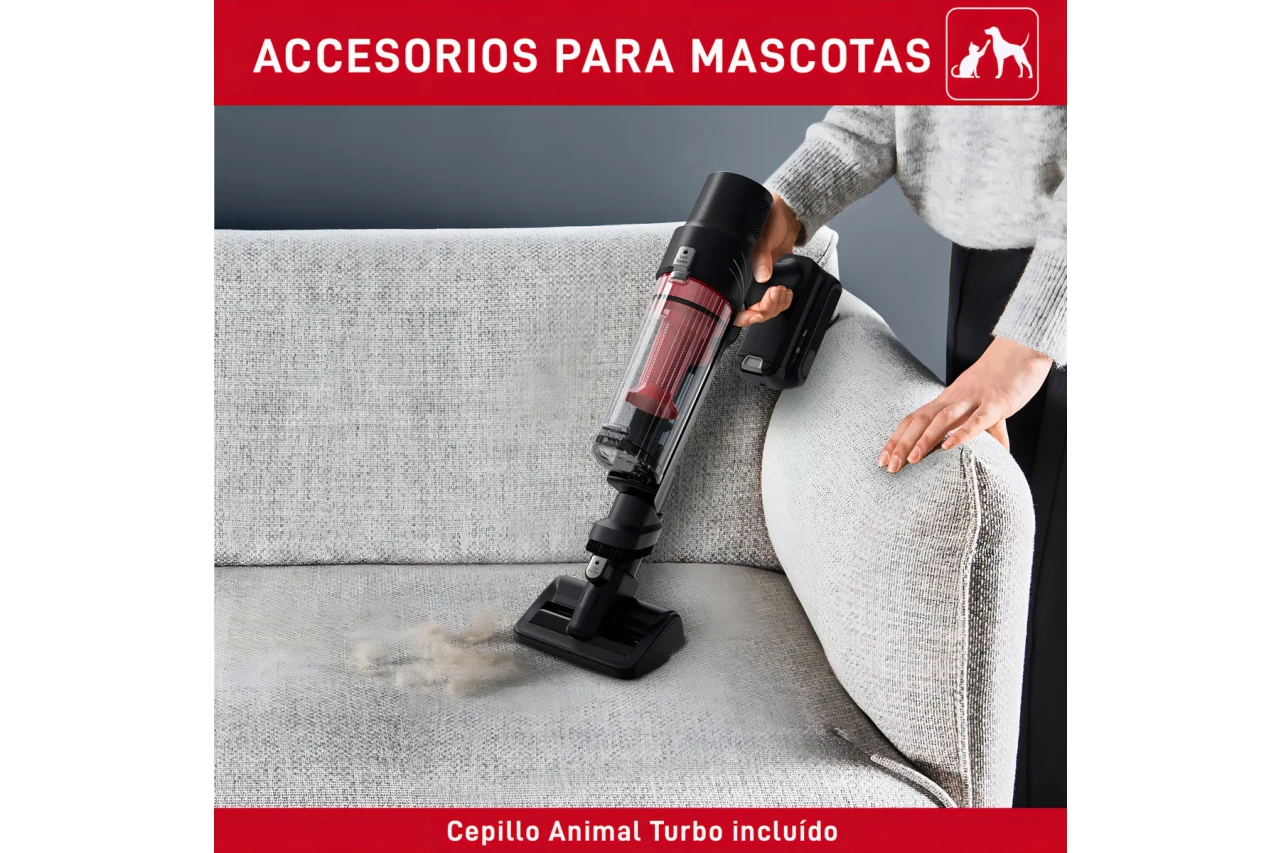 - Incluye accesorio para eliminar los pelitos de tu mascota de todo tipo superficies incluido tu vehículo - Aspiradora inalámbrica de 140W de potencia para mantener tu hogar impecable. - Cepillo de succión de alta velocidad para una limpieza altamente eficiente en todo tipo de pisos, alfombras y tapetes. - Cabezal con luz LED para rastrear el polvo en todas partes. - Diseño delgado y ligero: 1.2 kg en modo manual y 2 kg aspiradora completa. - Batería de larga duración, con autonomía de hasta 45 minutos. - Batería con ciclo de carga rápida de 3 horas. - Limpieza simplificada con fácil acceso al contenedor de polvo y filtro lavable. - Contenedor con capacidad de 0.44 L para un vaciado menos frecuente Diseñada para ofrecer una experiencia de limpieza sin esfuerzo, la aspiradora inalámbrica T-fal X-PERT 7.60 mantiene tu hogar impecable del piso al techo. Su potente motor de 140W combinado con el cabezal de succión de alto rendimiento es perfecto para una limpieza profunda en pisos y tapetes. Cuenta con varios accesorios que permiten transformar la aspiradora vertical en una de mano