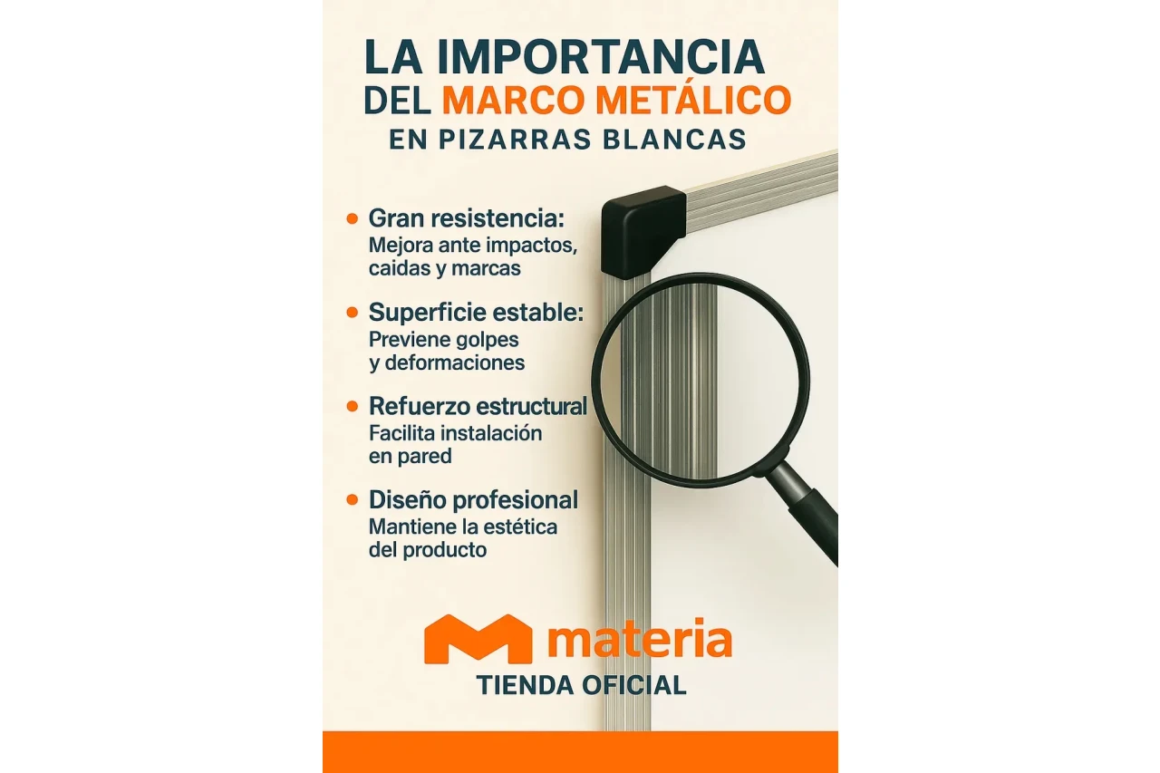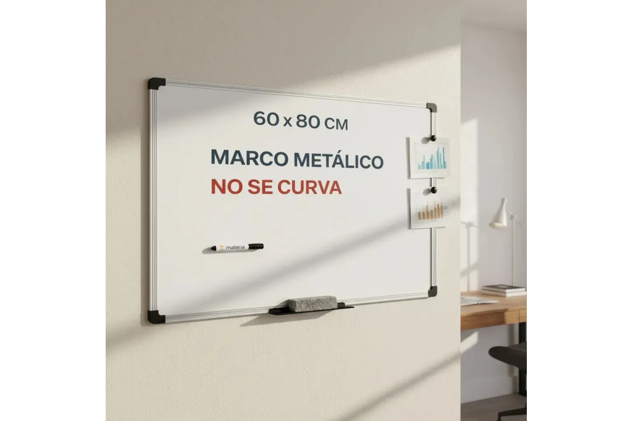 CUIDADO CON OTRAS PIZARRAS QUE SE VENDEN EN EL CANAL FULL DE MERCADO LIBRE: Dicen marco inyectado, eso significa que es marco de plástico y la superficie es de hojalata china (Material súper barato que se usa para hacer las latitas de Paté o Dulce de batata) y se quedan marcados los marcadores . Se doblan todas. La Pizarra Blanca para marcador Materia es la herramienta ideal para estudiantes, profesionales y creativos. Su superficie blanca para fibron permite una escritura clara y fácil de borrar, facilitando la organización de ideas y la presentación de proyectos. Su diseño elegante y moderno se adapta a cualquier espacio, ya sea en el aula, la oficina o el hogar. Es importante que sepas que no tenés que comprar nada adicional, te viene con todo. Fabricada con un armazón metálico resistente (únicas en mercado libre con esta característica) , esta pizarra garantiza durabilidad y estabilidad. Incluye UN marcador, lo que la convierte en un producto listo para usar desde el primer momento. Es adecuada para personas a partir de 5 años, lo que la hace perfecta para el aprendizaje y la creatividad en todas las etapas de la vida. Garantía del vendedor: 5 años
