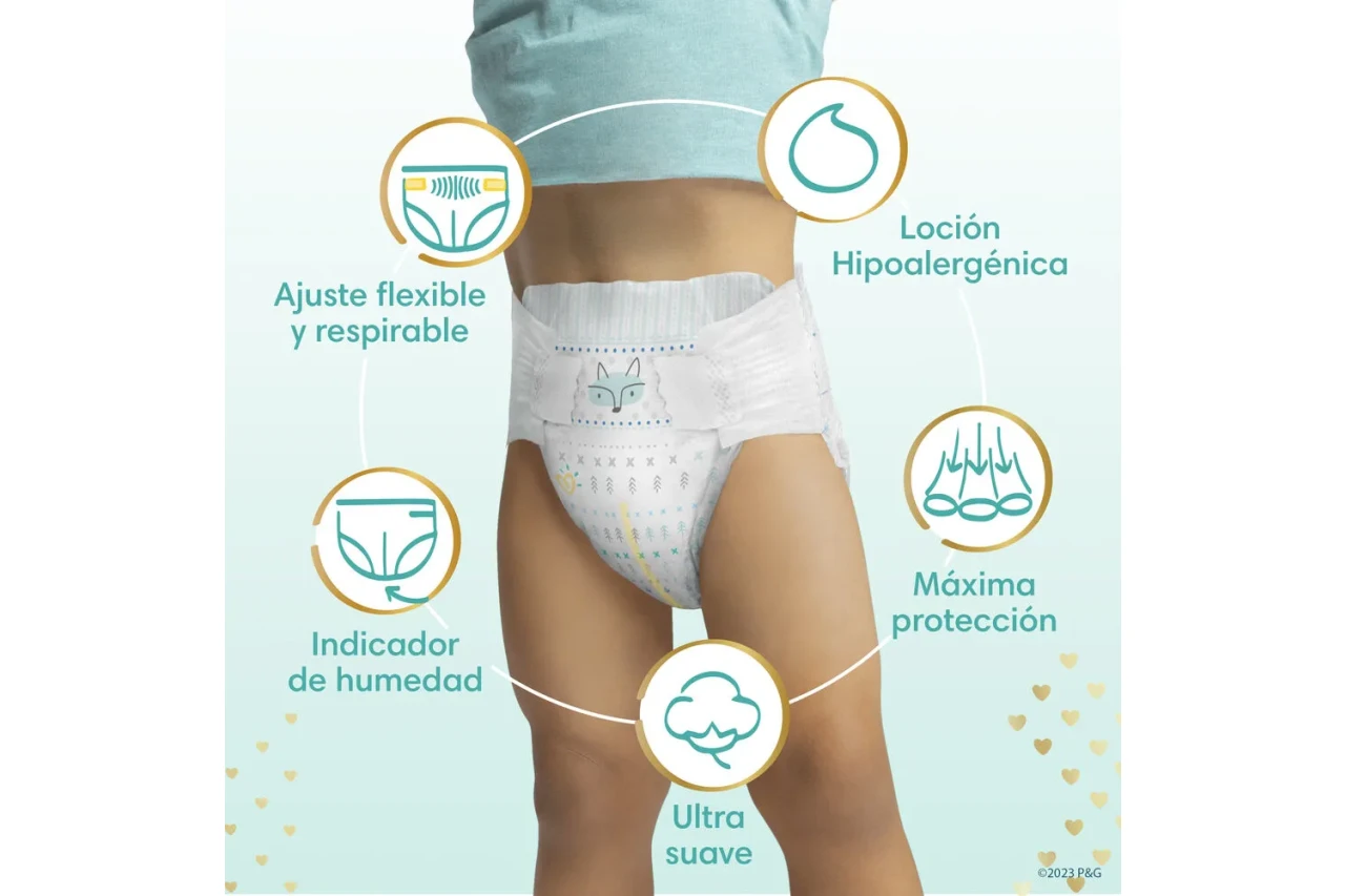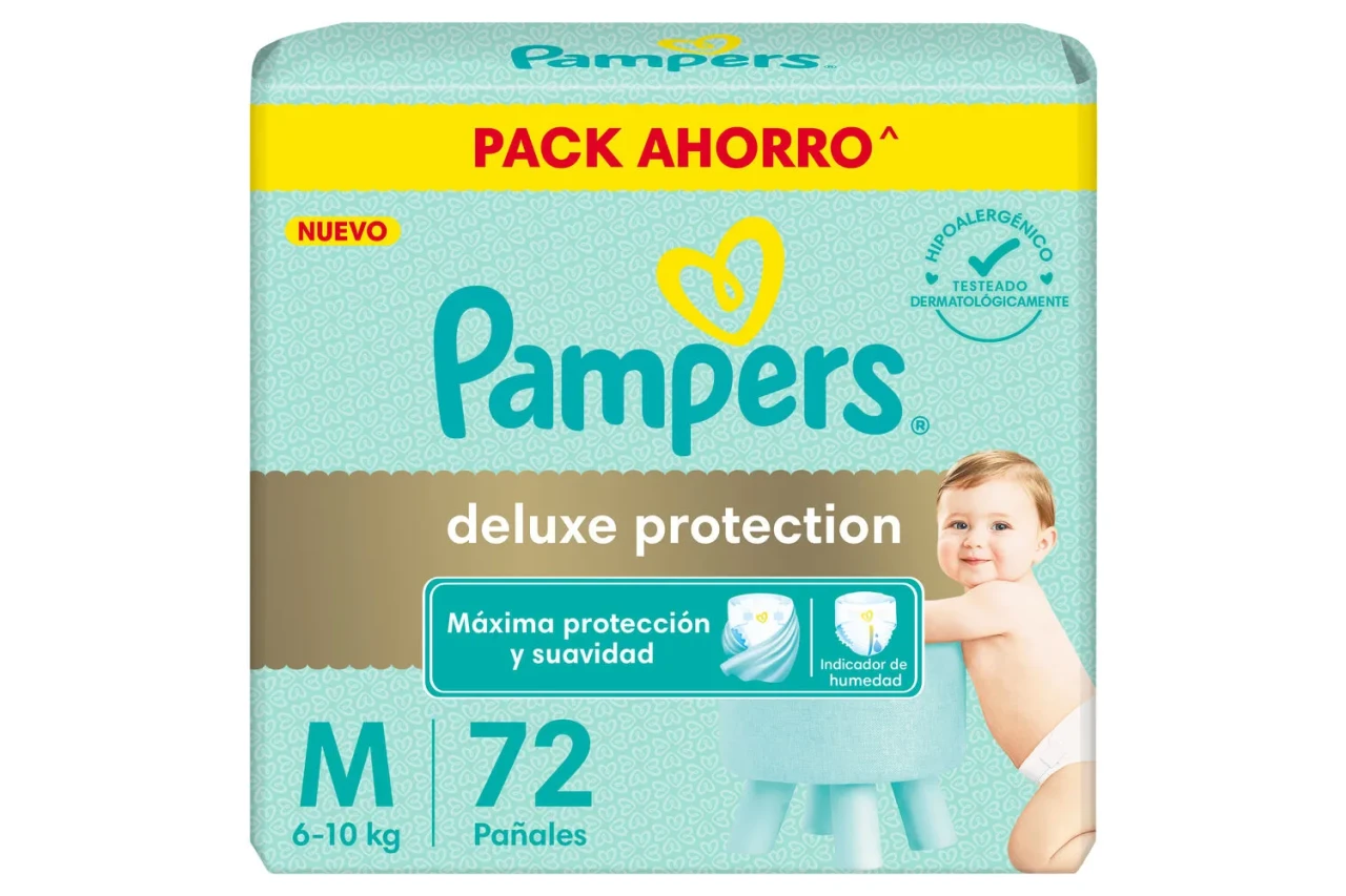 Pampers Deluxe Protection cuenta con la máxima absorción y suavidad de Pampers para proteger delicadamente la piel de tu bebé. Además cuenta con indicador de humedad para saber cuando es el momento del cambio, materiales ultra respirables para que la piel de tu bebé se mantenga sequita, ayuda a prevenir irritaciones y son hipoalergénicos. Probá la nueva versión de Pampers Deluxe Protección y dale a tu bebé la más suave protección de Pampers