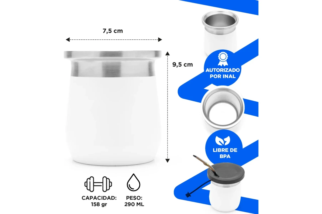 Mate de Acero Inoxidable con Tapa de Silicona Transforma tu experiencia de mate con nuestro elegante mate de acero inoxidable. Con una capacidad de 290 ml y una construcción robusta en acero inoxidable 304, este mate está diseñado para mantener tu bebida caliente y libre de derrames. La tapa de silicona antiderrame asegura que puedas disfrutar de tu mate en cualquier lugar sin preocupaciones. Características: -Material: Acero inoxidable 304, resistente y duradero. -Tapa de Silicona: Previene derrames y mantiene tu bebida segura. -Peso: 158 gramos, ligero y fácil de transportar. -Altura: 9.5 cm con tapa, ideal para una experiencia cómoda. -Capacidad: 290 ml, perfecta para una porción generosa. -Diámetro: 7.5 cm, compacto y práctico. -Libre de BPA: Sin contaminantes químicos. -Aprobado por INAL: Cumple con los estándares de seguridad. -Incluye: Mate con tapa antiderrame y bombilla. ¡No esperes más para disfrutar de un mate caliente y sin complicaciones! Garantía del vendedor: 30 días
