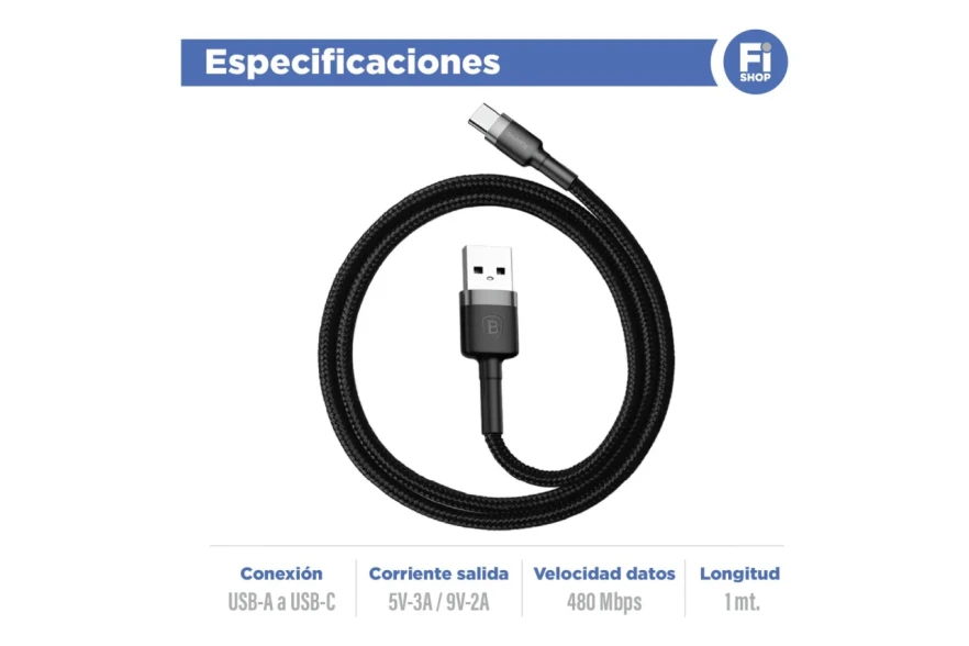 El cable USB-A a USB-C es la solución perfecta para tus necesidades de carga y transferencia de datos, y lo mejor de todo, ¡es compatible Iphone 15/16/17! CARACTERISTICAS DESTACADAS Compatibilidad con iPhone 15 / 16 / 17 : Este cable ha sido diseñado específicamente para funcionar sin problemas con los últimos Iphone. Olvídate de la frustración de buscar cables compatibles, este es el indicado. Velocidad de transmisión rápida: Con una velocidad de transmisión de datos de 480Mbps, podrás transferir archivos de manera rápida y eficiente, lo que significa menos tiempo esperando y más tiempo disfrutando de tus dispositivos. Construcción resistente: Este cable está hecho para durar. Su material de alta calidad incluye ABS, un plástico de alta resistencia, y un mallado de nylon que lo hace resistente a la abrasión y evita enredos. No tendrás que preocuparte por su durabilidad. ESPECIFICACIONES: - Compatible con iPhone 15 / 16 / 17 - Plug 1: USB-A - Plug 2: USB-C - Longitud: 1 Metro - Velocidad de transmisión: 480Mbps - Output corriente: 5V-3A / 9V-2A - Material: Aluminio, ABC (plástico de lata resistencia) y mallado de nylon