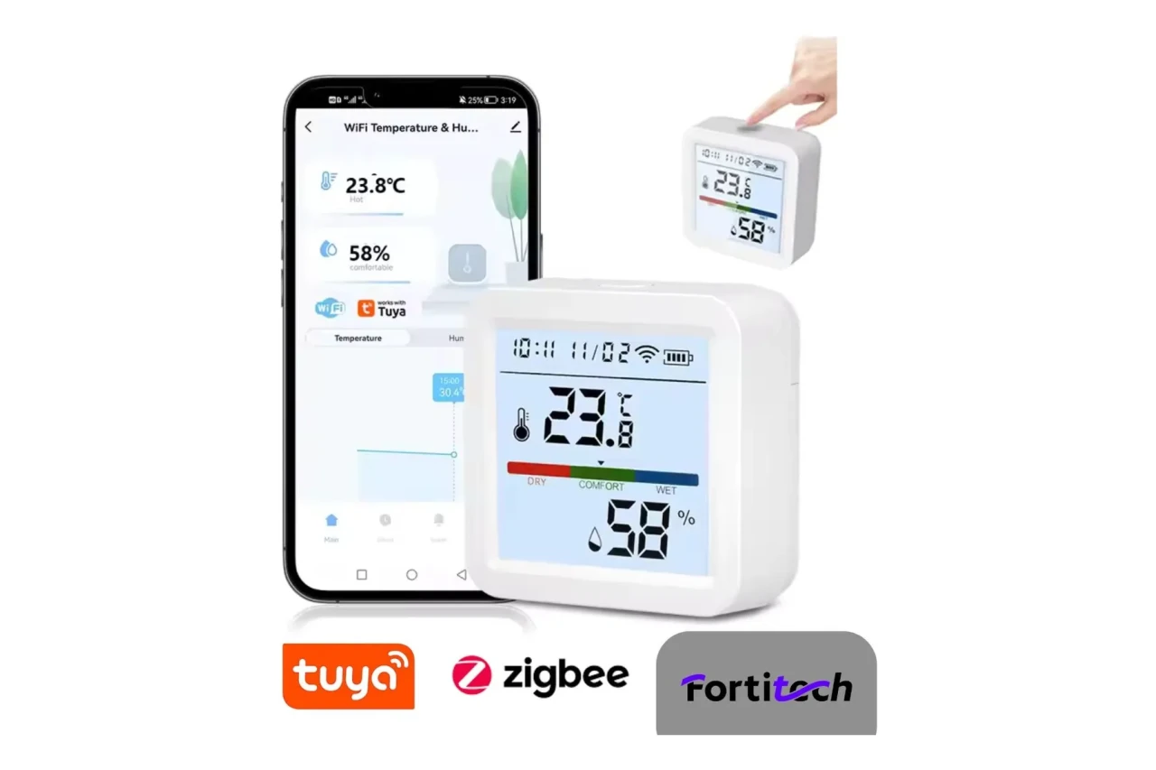 Sensor Zigbee de Temperatura, Humedad y Pantalla Digital FORTITECH FT-WL-TH05Z