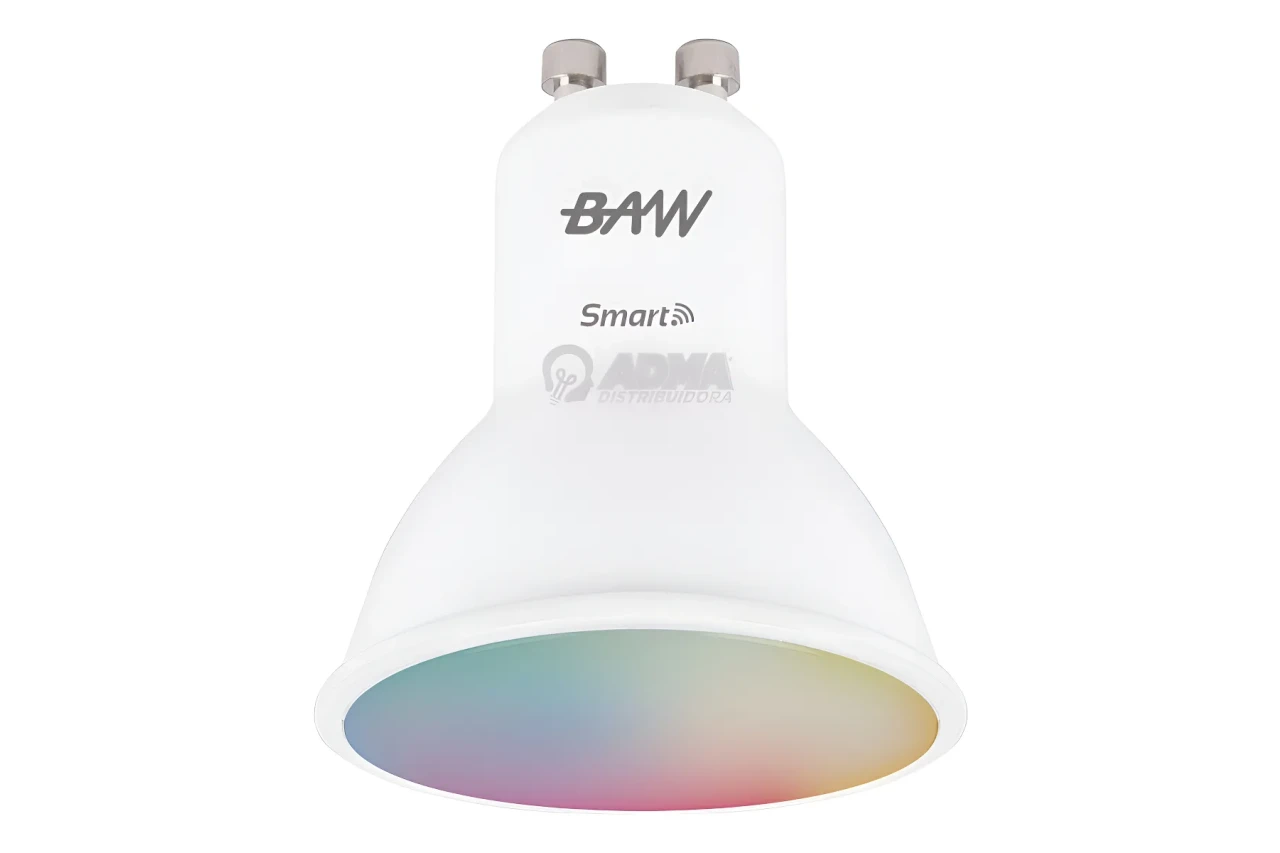 Dicroica Led Wifi Smart Life RGB Gu10 7w Celular Colores Controla la luz de tu hogar mediante una App en tu celular. Además, si cuentas con Alexa, podrías controlarlas a través de comandos de voz. CARACTERÍSTICAS: ---------- - Ambientes: Interior/Exterior - Color de la luz: RGB - Código universal de producto: 7798352882254 - Es dimeable: Sí - Flujo luminoso: 960 lm - Forma: Dicroica - Marca: BAW - Materiales: Aluminio - Modelo: GU10TY7105 - Tecnología de iluminación: LED - Temperatura de la luz: 2700-6500 K - Tipos de rosca: GU10 - Unidades por envase: 1 - Vida útil: 20000 h - Voltaje: 220V - Watts: 7 W - Ángulo de apertura: 105°