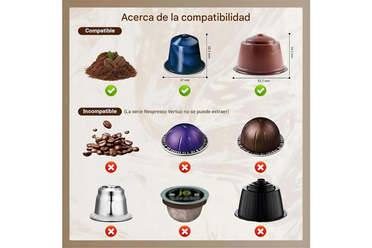 > > Aceptamos pagos a través de MercadoPago y MercadoEnvíos. MercadoEnvíos ofrece envíos a todo el país. Entrega el mismo día disponible dentro de Buenos Aires (Capital Federal) mediante mensajero en moto. Cafetera Portátil Espresso 3 en 1 Recargable con Cápsulas Disfruta de un café espresso perfecto en cualquier lugar con esta cafetera portátil 3 en 1. Compatible con cápsulas y café molido, recargable y sin cables, ideal para preparar tu café caliente o frío según lo desees. Características principales: Diseño 3 en 1: Compatible con cápsulas de diferentes marcas y café molido, brindándote mayor flexibilidad. Portátil y recargable: Batería incorporada que permite su uso sin cables, perfecta para llevar a todas partes. Café frío o caliente: Prepara café espresso según tu preferencia, ya sea frío o caliente, en minutos. Fácil de usar: Simplemente inserta la cápsula, presiona un botón y disfruta de tu café en pocos segundos. Compacta y ligera: Ideal para viajar, llevar al trabajo, camping o para uso diario en casa. Material resistente: Fabricada con ABS de alta calidad para asegurar durabilidad y resistencia. Especificaciones: Tipo: Cafetera portátil de espresso Funciones: Preparación de café caliente y frío Compatibilidad: Cápsulas múltiples y café molido Alimentación: Recargable por USB Presión: 15-20 bar aproximadamente Capacidad: 60-80 ml por extracción Dimensiones: Compacta y ligera, fácil de transportar Colores disponibles: Negro, blanco, plateado Con esta cafetera portátil 3 en 1, puedes disfrutar de un delicioso espresso dondequiera que estés. Perfecta para momentos de café en cualquier lugar, ya sea en el hogar, oficina o en tus aventuras al aire libre. Garantía del vendedor: 30 días