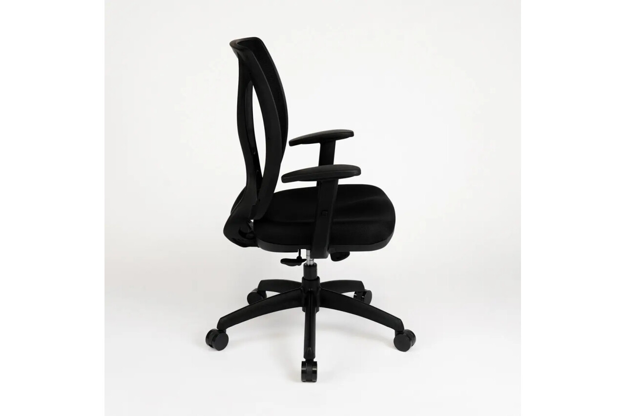 SILLÓN ALMA ASYNCRO BRAZOS REGULABLES Características: Brazos regulables en altura BR100PP. Estrella de PVC. Altura total regulable: 101 cm a 110 cm. Profundidad: 66 cm. Altura regulable del asiento: 47 cm a 55 cm. Sistema asyncro para bloquear la inclinación en diferentes puntos. Tapizado respaldo: Red Negra. Tapizado asiento: Ecocuero o tela Marathon negra. Silla ergonómica diseñada para adaptarse a las formas del cuerpo y garantizar un reparto de presiones equilibrado. Ajuste de altura para fijar la posición del torso. Apoyabrazos incorporados para favorecer la postura. Base con ruedas para facilitar el movimiento y el traslado. Asiento giratorio 360º.
