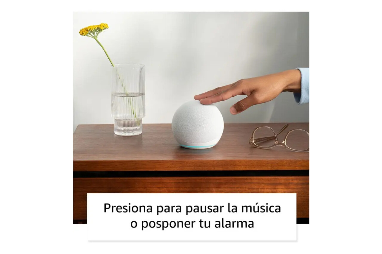Sumate al mundo de la inteligencia artificial con el Amazon Echo Dot 5th Gen que ofrece soluciones para automatizar algunas tareas en tu hogar. ¡SISTEMA DE AUDIO MULTI-ROOM! Este novedoso sistema permite compartir música o realizar anuncios en distintas habitaciones y en el mismo momento. Tan solo requiere que conectes los dispositivos smart compatibles entre sí. ¡CONTROLA TU MÚSICA Y CONTENIDO FAVORITOS! Escucha en toda tu casa música, audiolibros y pódcast de Amazon Music, Apple Music, Spotify, Deezer y otros servicios de música en streaming o usa el Bluetooth integrado. ¡ALEXA SIEMPRE ESTÁ AHÍ PARA AYUDARTE! Pídele que te diga qué tiempo hace o que ponga temporizadores, hazle preguntas o deja que te cuente un chiste. ¿Quieres dormir un poquito más? Pospón la alarma del Echo Dot con un solo toque. ¡MANTÉN TU CASA CONFORTABLE! Controla dispositivos de Hogar digital con la voz y define rutinas activadas con los sensores de temperatura integrados en tu Echo Dot. Crea rutinas para encender automáticamente un ventilador inteligente cuando la temperatura de tu casa aumente por encima del umbral que establezcas. ¡SÁCALE MÁS PROVECHO VINCULANDO DISPOSITIVOS! Inunda tu casa de música con dispositivos Echo compatibles en distintas habitaciones o crea un sistema de cine en casa con el Fire TV. ¡DISEÑADO PARA PROTEGER TU PRIVACIDAD! Con múltiples capas de protección y control de la privacidad, incluido un botón para desactivar los micrófonos que los desconecta electrónicamente. ¡CON CERTIFICADO CLIMATE PLEDGE FRIENDLY! Hemos integrado la sostenibilidad en el diseño de este dispositivo. El 99 % del embalaje de este dispositivo procede de bosques gestionados responsablemente o materiales reciclados, el 95 % de la tela proviene de tela reciclada posconsumo y el 55 % de los plásticos provienen de plásticos reciclados posconsumo. Aviso legal • Apto para la red eléctrica de tu país