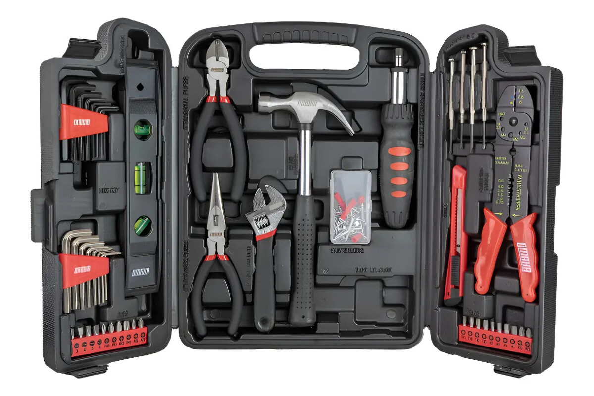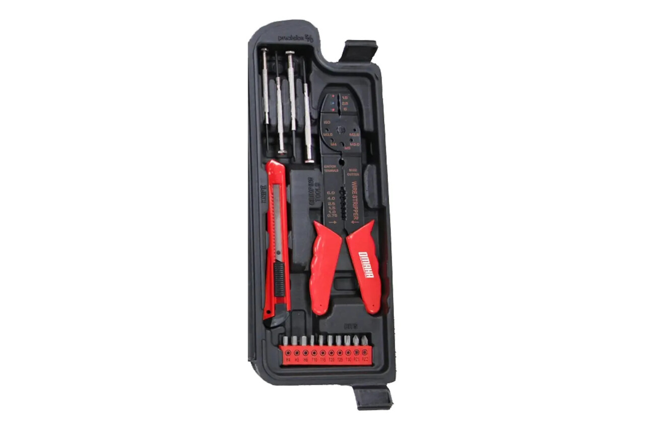 SET DE HERRAMIENTAS 70 PIEZAS Combinadas SHK-70 DESCRIPCION - 16 llaves hexagonales: 1.5 | 2 | 2.5 | 3 | 4 | 5 | 5.5 | 6 | 1/16 | 5/64 | 3/32 | 1/8 | 5/32 | 3/16 | 7/32 | 1/4 - 4 Destornilladores de precisión: PH/SL 2.4mm; 3 mm - 20 puntas 1/4 de 25 mm: Plano 3, 4, 5, 6, 7 mm | Hexagonal H3, H4, H5, H6 | Torx T10, T15, T20, T25, T30, T40 | Philips PH0, PH1, PH2, PH3 | Punta 1/4 cuadrante - Destornillador crique reversible - Nivel burbuja - Pinza pelacables - Llave ajustable de 8" - Pinza de punta - Alicate - Cinta aislante - Set de clavos - Cutter - Martillo de garra - Maletín plástico Construcción duradera y resistente: Las herramientas están hechas con materiales de alta calidad y maletín de almacenamiento que facilita el transporte y la protección de las herramientas. Ideal para tareas domésticas y profesionales. Las herramientas están fabricadas en acero al carbono con tratamiento térmico y chapado en cromo para resistir la corrosión. Las asas tienen doble inmersión y las cajas son resistentes. Cumplen con los estándares ANSI y han pasado pruebas de calidad. Se incluye un maletín plástico de alta resistencia.