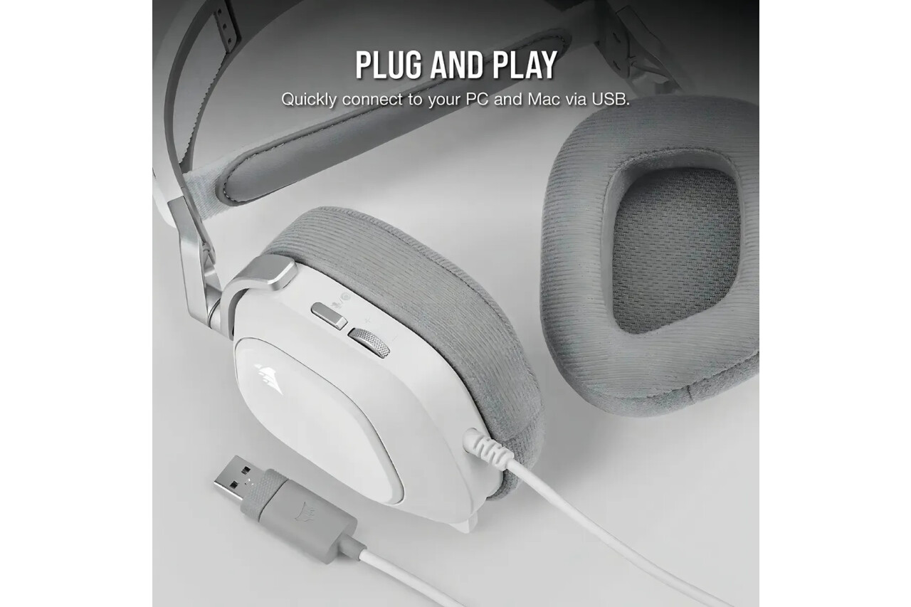 Los Auriculares Corsair HS80 Premium Dolby Audio 7.1 en color blanco son la elección perfecta para los entusiastas de los videojuegos que buscan una experiencia de sonido envolvente y de alta calidad. Con un diseño ergonómico y cómodo, estos auriculares están equipados con tecnología de cancelación de ruido, lo que permite sumergirse completamente en el juego sin distracciones externas. Con una respuesta en frecuencia de 20 Hz a 20 kHz y una sensibilidad de 120 dB, los HS80 ofrecen un sonido claro y potente, ideal para disfrutar de música, películas y, por supuesto, videojuegos. Su micrófono flexible garantiza una comunicación nítida con tus compañeros de equipo, mientras que la iluminación RGB añade un toque estético a tu setup. Estos auriculares cuentan con un cable de 1.8 m y un conector USB, lo que los hace fáciles de conectar a una variedad de dispositivos. Aunque no son inalámbricos, su diseño robusto y duradero asegura que estén listos para largas sesiones de juego. Con un alcance de 18.288 m, son perfectos para quienes buscan calidad y rendimiento en cada partida.