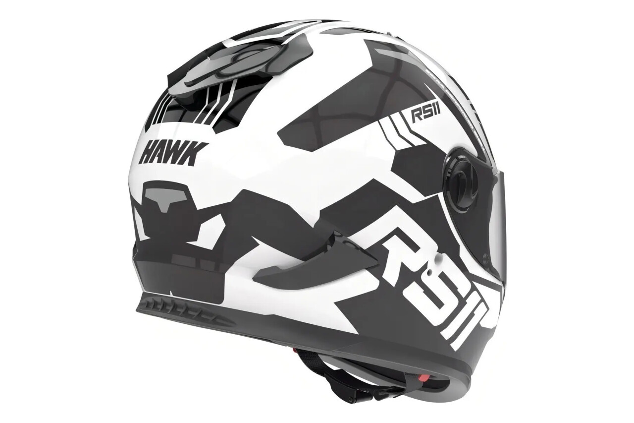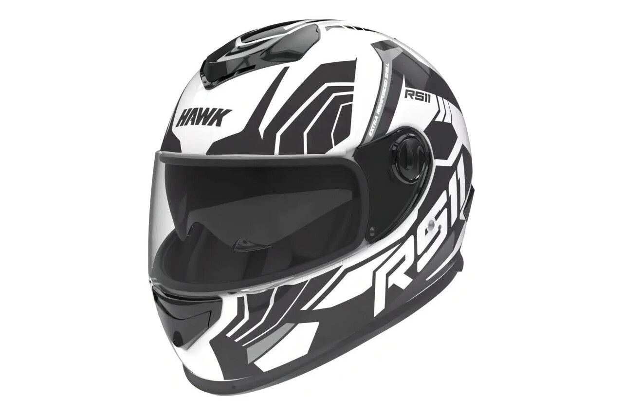 HAWK RS11 : ALTA ELEGANCIA El RS11 es un casco integral que posee un diseño moderno, deportivo, apto para los niveles de exigencia más altos. Un visor mucho más resistente gracias al tratamiento anti scratch coating y su sunvisor hacen de este casco el ideal tanto para el día como para la noche. Los interiores están pensados para ofrecer comodidad y frescura. El cierre del casco queda asegurado por nuestro nuevo modelo de hebilla automática, haciendo realmente fácil la apertura y cierre de la misma. Gráfica: Calcos de agua Material: ABS Retención: Hebilla Automática Terminación: Laca Tricapa Ventilación: Superior e Inferior Todos nuestros cascos están fabricados en ABS virgen, el mismo material que usan las principales marcas del mundo para sus cascos. Fabricación nacional con calidad internacional.