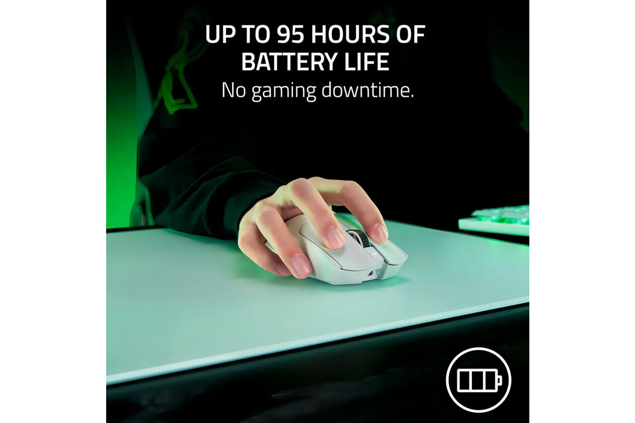 El Mouse Razer Viper V3 Pro White es la herramienta definitiva para los gamers que buscan precisión y velocidad en cada partida. Con un sensor óptico Focus Pro 35K, ofrece una resolución de hasta 35,000 dpi y una velocidad máxima de 750 ips, garantizando un rendimiento excepcional en cualquier situación de juego. Su diseño ergonómico y ligero, con un peso de solo 63 g, permite largas sesiones de juego sin fatiga. Este mouse inalámbrico en color blanco combina estilo y funcionalidad, ideal para quienes buscan un equipo que se adapte a su estética de juego. Con una conexión USB-C y una frecuencia de 1 kHz, la latencia es mínima, asegurando que cada movimiento se traduzca instantáneamente en la pantalla. Además, cuenta con cinco botones programables que permiten personalizar la experiencia de juego según las preferencias del usuario. La batería de larga duración asegura que el mouse esté siempre listo para la acción, mientras que su rueda de desplazamiento y luces personalizables añaden un toque de personalización. Compatible con sistemas operativos Windows y macOS, el Razer Viper V3 Pro es la elección perfecta para gamers diestros que buscan un mouse que combine tecnología avanzada y comodidad. Mejora tu experiencia de juego y lleva tu rendimiento al siguiente nivel con este mouse de alto rendimiento. Especificaciones Técnicas Peso: 55 gramos (versión blanca) Sensor: Razer™ Focus Pro de 35,000 DPI (2.ª generación) Velocidad de seguimiento (IPS): 750 Aceleración máxima: 70 G Frecuencia de sondeo (Polling Rate): hasta 8000 Hz con el dongle HyperPolling incluido Interruptores: Razer™ Optical Mouse Switches Gen-3 (durabilidad de 90 millones de clics) Botones programables: 8 Conectividad: inalámbrica (2.4 GHz) y por cable USB-C Duración de la batería: hasta 95 horas Dimensiones: 127.1 mm (largo) × 63.9 mm (ancho) × 39.9 mm (alto) Compatibilidad: Windows y macOS (plug-and-play, con funciones avanzadas mediante Razer Synapse)