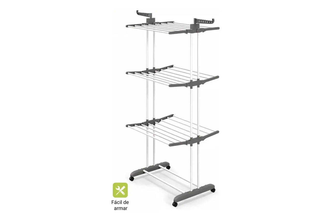 El Tender Vertical 3 Niveles de Home World es la solución ideal para quienes buscan optimizar el espacio en el hogar mientras mantienen la ropa fresca y bien secada. Diseñado para ofrecer una capacidad de carga de hasta 50 kg, este tendedero de pie es perfecto para familias o para quienes tienen grandes cantidades de ropa que tender. Con un tamaño desplegado de 63 cm de largo y 1.2 m de ancho, el tendedero proporciona un amplio espacio para colgar diversas prendas. Su altura de 1.74 m permite un uso confortable, mientras que su diseño vertical lo hace perfecto para espacios reducidos, maximizando la eficiencia en cada rincón de su hogar. La facilidad de uso se presenta a través de sus alas extensibles, que permiten una mayor versatilidad al colgar prendas voluminosas. Además, su estructura es portátil y ligera, facilitando su traslado gracias a las ruedas incluidas, lo que brinda la conveniencia de moverlo a sus áreas preferidas sin esfuerzo. Fabricado en plástico resistente y con un elegante diseño en color gris y blanco, este tendedero no solo es funcional sino también estéticamente agradable, complementando la decoración de su hogar. Experimentar la comodidad y eficiencia en el secado de su ropa es más sencillo con este práctico accesorio, que se pliega fácilmente para un almacenaje sin complicaciones.