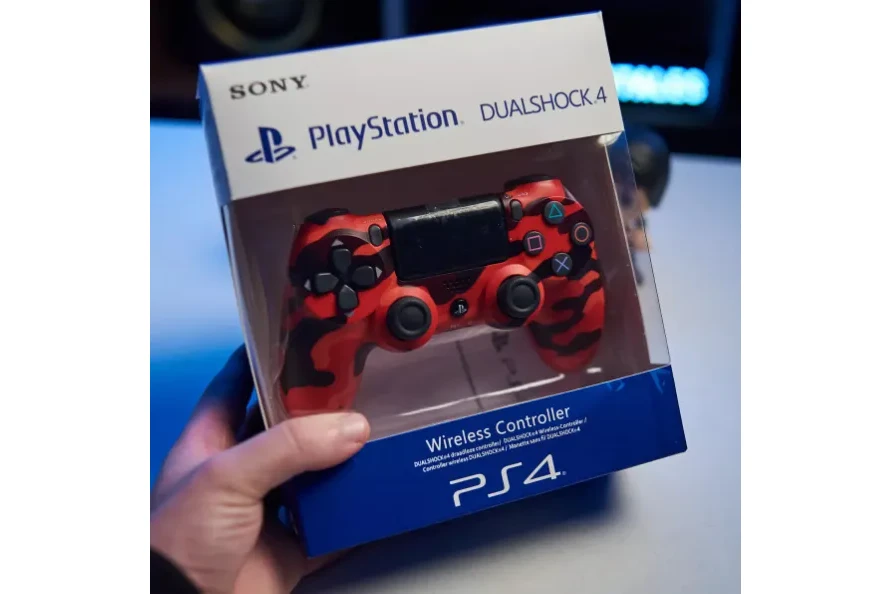 Joystick PS4 Sony Inalámbrico Dualshock 4 V2 Red Camo Chat con micrófono / parlante integrado, Almohadilla táctil de 2 puntos, Vibración mejorada. Transmite de forma inmediata Comparte triunfos y logros con tus amigos en las redes sociales más populares con solo tocar el botón SHARE. Nuevas ideas Guía, haz gestos o dibuja con la almohadilla táctil. Su ubicación en la parte frontal del controlador da más libertad a tu forma de jugar. Escucha cada detalle Disfruta del sonido de alta fidelidad con el controlador y chatea con tus amigos con el parlante mono incorporado y la toma para auriculares. Juego personalizado Cuatro LED de color ofrecen una forma sencilla de identificar a los jugadores y visualizar información de juego útil, como cuando un personaje sufre daños serios. Siente la acción No solo podrás ver y oír todo con más detalle; también sentirás vibraciones mucho más intensas. Diseño de precisión Toma el control con aún más comodidad gracias a su nuevo diseño. Además, los botones y joysticks analógicos se han mejorado para aumentar la precisión. Especificaciones Dimensiones exteriores: Aprox. 162 mm x 52 mm x 98 mm (ancho x alto x profundo) Peso: Aprox. 210 g Teclas/Interruptores: Botones de acción (triángulo, círculo, cruz, cuadrado), Botones de dirección (arriba/abajo/izquierda/derecha), Botón OPTIONS, Botón PS, Botón de almohadilla, R1/L1/R2/L2, Joystick izquierdo / botón L3, Joystick derecho / botón R3, Botón SHARE Almohadilla táctil: Almohadilla táctil de 2 puntos, mecanismo "pulsar", tipo capacitivo Sensor de movimiento: Sistema sensor de movimiento de seis ejes (tres ejes giroscopio, tres ejes acelerómetro) Otras funciones: Barra de luces, vibración, parlante mono integrado Puertos: USB (Micro B), puerto de ampliación, conector para auriculares estéreo Comunicación inalámbrica: Bluetooth Ver2.1+EDR Tipo de batería: Batería recargable de iones de litio integrada Voltaje de la batería: CD 3,7 V Capacidad de la batería: 1000 mAh