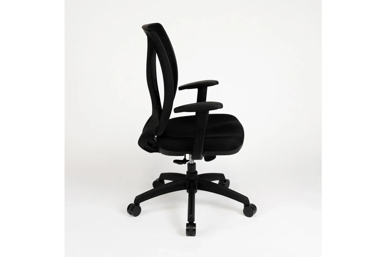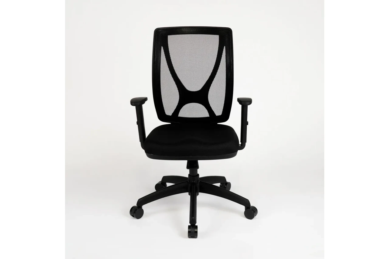 SILLÓN ALMA ASYNCRO BRAZOS REGULABLES: - Características del producto Brazos regulables en altura BR100PP Estrella de PVC Altura regulable: 101 cm x 110 cm Profundidad: 66 cm Altura Regulable del Asiento: 47 cm a 55 cm Sistema asyncro para bloquear la inclinación en diferentes puntos Tapizado respaldo: Red Negra Tapizado asiento: Ecocuero o tela Marathon negra Ergonómica y confiable Adoptar una mala postura al sentarse puede traer patologías que afectan el bienestar. Esta silla ergonómica se adapta a las formas del cuerpo y asegura un reparto de presiones equilibrado, ideal para quienes pasan mucho tiempo frente al escritorio por trabajo o estudio. Ajuste a la medida Con el ajuste de altura, se puede fijar la posición del torso respecto a la mesa de trabajo para conseguir una silla cómoda y adecuada a las necesidades individuales. Cuidado del cuerpo Los apoyabrazos favorecen la postura al escribir y ayudan a incorporarse con mayor facilidad. Movilidad Las ruedas permiten moverse y limpiar el espacio con facilidad, trasladar la silla sin dificultad y rotar el asiento 360º sin cambiar de posición.