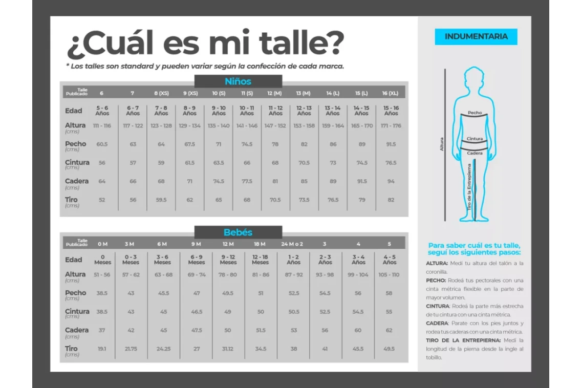No confundir las medidas F O EUR (EUROPA) con las medidas argentinas, Guiarse por la tabla de talles.