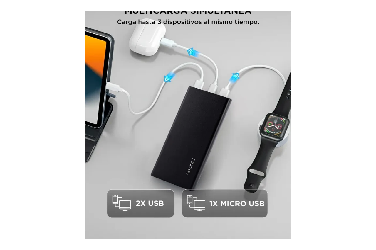 Cod. : BC000028 Power Bank Gadnic 10000 mah Metal Cargador Portatil _______________________________________________________________ Comprá AHORA y asegurate ésta OFERTA BOMBA por Tiempo Limitado. ¡ULTIMAS UNIDADES DISPONIBLES! Somos BIDCOM: Líderes en comercio electrónico y tecnología Nuestro propósito es facilitar el acceso a productos innovadores y de interés, brindando una experiencia extraordinaria. Más de 15 años vendiendo en MercadoLibre. Más de 5 millones de compradores nos eligieron y recomendaron, 100 porciento de opiniones positivas. Hemos sido elegidos por MercadoLibre como los mejores vendedores de todo el sitio. ¡MercadoLibre nos reconoció como los mejores vendedores de todo el sitio a nivel regional! _______________________________________________________________ Power Bank Gadnic 10000 mah Metal Cargador Portatil ACERCA DE ÉSTE PRODUCTO: Más autonomía para tu día a día: El power bank Gadnic BC000028 de 10.000 mAh ofrece mayor respaldo energético que los modelos estándar, permitiendo múltiples cargas de celulares y dispositivos compatibles sin depender de enchufes. Diseño mini portable y peso ultraliviano: Con solo 145 gramos y formato compacto, el power bank Gadnic BC000028 es ideal para llevar en mochilas, carteras o bolsillos sin sumar volumen ni incomodidad. Carcaza metálica resistente y elegante: Su cuerpo metálico mejora la durabilidad frente al uso diario y transmite una sensación de calidad superior, ideal para uso urbano, viajes o trabajo. Múltiple conectividad para distintos dispositivos: Incorpora salida USB, entrada Micro USB y entrada Tipo C exclusiva para carga del power bank, permitiendo cargar celulares y tablets de forma simple y segura. Indicadores LED para control de batería: Los cuatro LEDs frontales muestran el nivel de carga disponible, ayudando a planificar recargas y evitar quedarse sin energía en momentos clave. _______________________________________________________________ CARACTERÍSTICAS: - Capacidad: 10.000 mAh - Mini Portable - Carga Rapida - Carcasa: Metálica - Batería: Lipolimero - Voltaje: 5 V - Corriente: 3.0 - Dimensiones: 13,6 x 7,2 x 1,15 - Peso: 145 gramos - 4 Led Indicadores de Bateria - 1 x Puerto USB - 1x Puerto Micro-USB - 1 x Tipo C - Entrada del tipo C: 5V 2A (únicamente - para cargar el powerbank) - Salida USB: 5V 2A - Entrada del Micro usb: 5V 2A SE ENTREGA CON: - 1x Power Bank Gadnic BC000028 - 1x Cable de Carga _______________________________________________________________ DESCUBRÍ NUESTRA VARIEDAD DE PRODUCTOS: En el siguiente link podés ver todos los productos que desde Bidcom publicamos en MercadoLibre: http://eshops.mercadolibre.com.ar/bidcom Notebooks - Aspiradoras Robot - Cámaras de Seguridad - Ionizadores Solares - Gazebos, Pérgolas y Sombrillas - Freidoras de Aire - Pequeños Electrodomésticos - Contadoras de Billetes - Aires Acondicionados - Celulares - Masajeadores - Drones - Televisores - Handies - Impresoras 3D - Artículos de Belleza y más Además, somos representantes oficiales de marcas de alto prestigio a nivel global como Gadnic - Sony Playstation - Asus - DJI - Creality - Baofeng - iRobot - KONNWEI - Kemei - QCY - YIHUA entra otras. _______________________________________________________________ VISITANOS EN NUESTRA SUCURSAL Sucursal CABA - Villa Ortuzar (Cerca de la estación Triunvirato del subte B) Nuestros horarios de atención son: Lunes a Viernes de 9 a 19hs ; Sábados y Feriados: 10 a 17hs. ¡Descubrí nuestros productos y recibí atención personalizada de nuestro equipo _______________________________________________________________ GARANTÍA OFICIAL EN TODOS NUESTROS PRODUCTOS Ofrecemos 12 meses de garantía oficial de fábrica en todos los productos Gadnic y servicio técnico especializado durante todo el periodo de garantía. Además, ofrecemos garantía extendida, lo que brinda a los clientes una mayor tranquilidad y respaldo a largo plazo. _______________________________________________________________ ENVÍOS A TODO EL PAÍS Potenciamos tu experiencia de compra con nuestra extensa flota de más de 200 vehículos exclusivos, garantizando entregas rápidas en el día y, en algunos casos, ¡en tan solo 3 horas! Este servicio está disponible todos los días de la semana, de lunes a domingo, hasta las 18:00 horas. _______________________________________________________________ ¡LLEGA HOY! Nuestros productos llegan a todo el país a través de Mercado Envíos. Consultá el valor y el tiempo de entrega colocando tu código postal en el cotizador que se encuentra debajo del precio de cada publicación _______________________________________________________________ MAYORISTA Disponemos de un equipo especializado en ventas mayoristas B2B, brindando las mejores opciones de financiación y servicios de entrega adaptados a tus necesidades. _______________________________________________________________ ATENCIÓN TELEFÓNICA Ofrecemos atención telefónica con agentes especializados todos los días, de 9:00 a 20:00, para brindarte el mejor servicio y resolver tus consultas. ¡Estamos aquí para ayudarte! _______________________________________________________________ RESPUESTA A PREGUNTAS 24HS Tenemos un equipo especializado disponible las 24 horas, listo para responder tus preguntas y brindarte asesoramiento experto sobre nuestros productos. ¡No dudes en escribirnos! _______________________________________________________________ REDES SOCIALES Síguenos en todas nuestras redes sociales, tanto BIDCOM como GADNIC, para mantenerte al tanto de los últimos lanzamientos, promociones y preventa exclusiva. ¡No te pierdas las novedades! _______________________________________________________________ SERVICIO TÉCNICO En BIDCOM, nuestro equipo altamente especializado garantiza a nuestros clientes soluciones integrales y rápidas, con acceso a una amplia variedad de repuestos y reparaciones para todos tus equipos. Estamos comprometidos con tu satisfacción. ________________