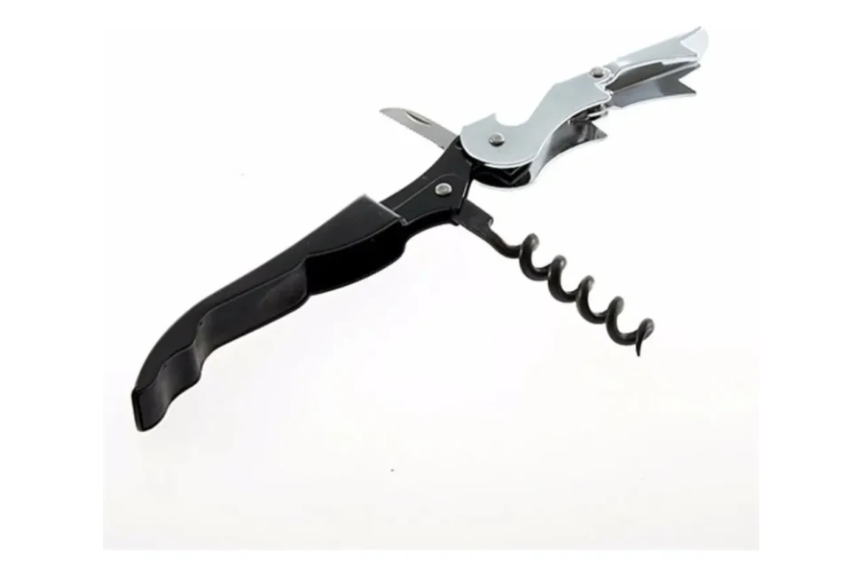 Sacacorcho Dos Tiempos De Mozo Modelo: Dos Tiempos Material: Acero Multifunción: Sacacorchos 3 en 1 con navaja, abrebotellas de chapas y navaja dentada. Calidad: Fabricado en acero inoxidable, con mango que sirve de palanca y hélice o espiral teflonada para facilitar la inserción en corcho y minimizar residuos. Usos: Adecuado para la mayoría de vinos con corcho o tapón. No recomendado para botellas con corcho frágil o espumosos. Comodidad: Diseño ergonómico y fácil de manejar. Compacto y práctico para llevar a comidas al aire libre.