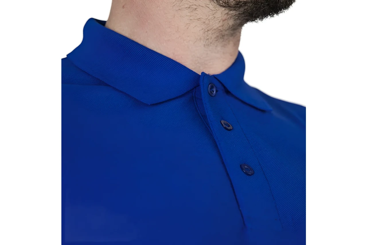 REMERAS TIPO POLO -Modelo: Labrador -Color: Azul -Material: Tela Piqué -Talle: del S al 4XL Características -Costuras reforzadas -Mangas entallada -3 Botones en la parte del cuello del mismo color que la remera