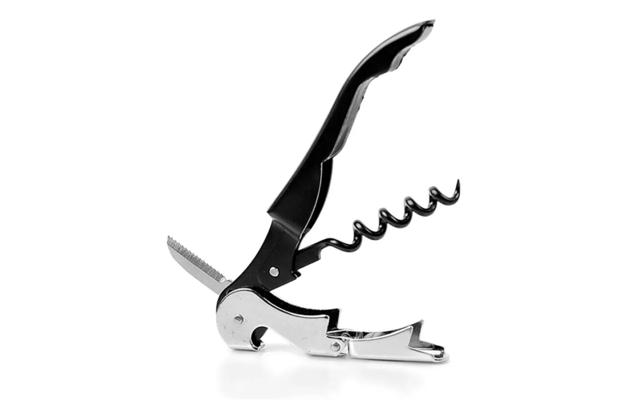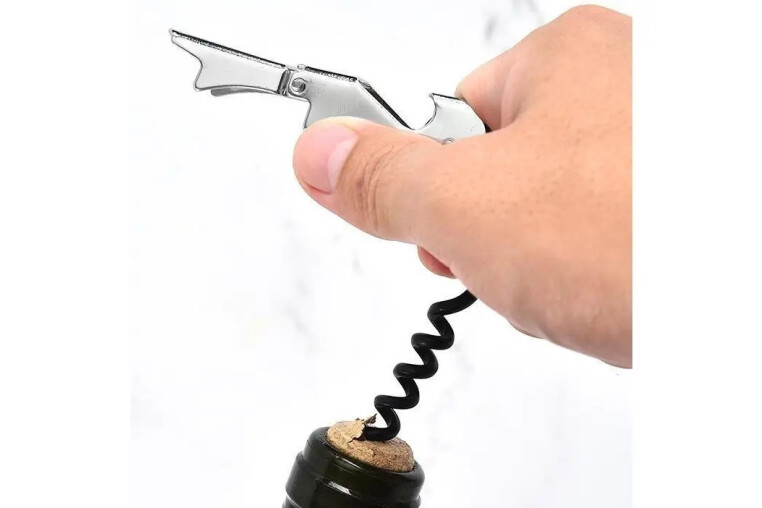 Sacacorcho Dos Tiempos De Mozo Modelo: Dos Tiempos Material: Acero Multifunción: Sacacorchos 3 en 1 con navaja, abrebotellas de chapas y navaja dentada. Calidad: Fabricado en acero inoxidable, con mango que sirve de palanca y hélice o espiral teflonada para facilitar la inserción en corcho y minimizar residuos. Usos: Adecuado para la mayoría de vinos con corcho o tapón. No recomendado para botellas con corcho frágil o espumosos. Comodidad: Diseño ergonómico y fácil de manejar. Compacto y práctico para llevar a comidas al aire libre.