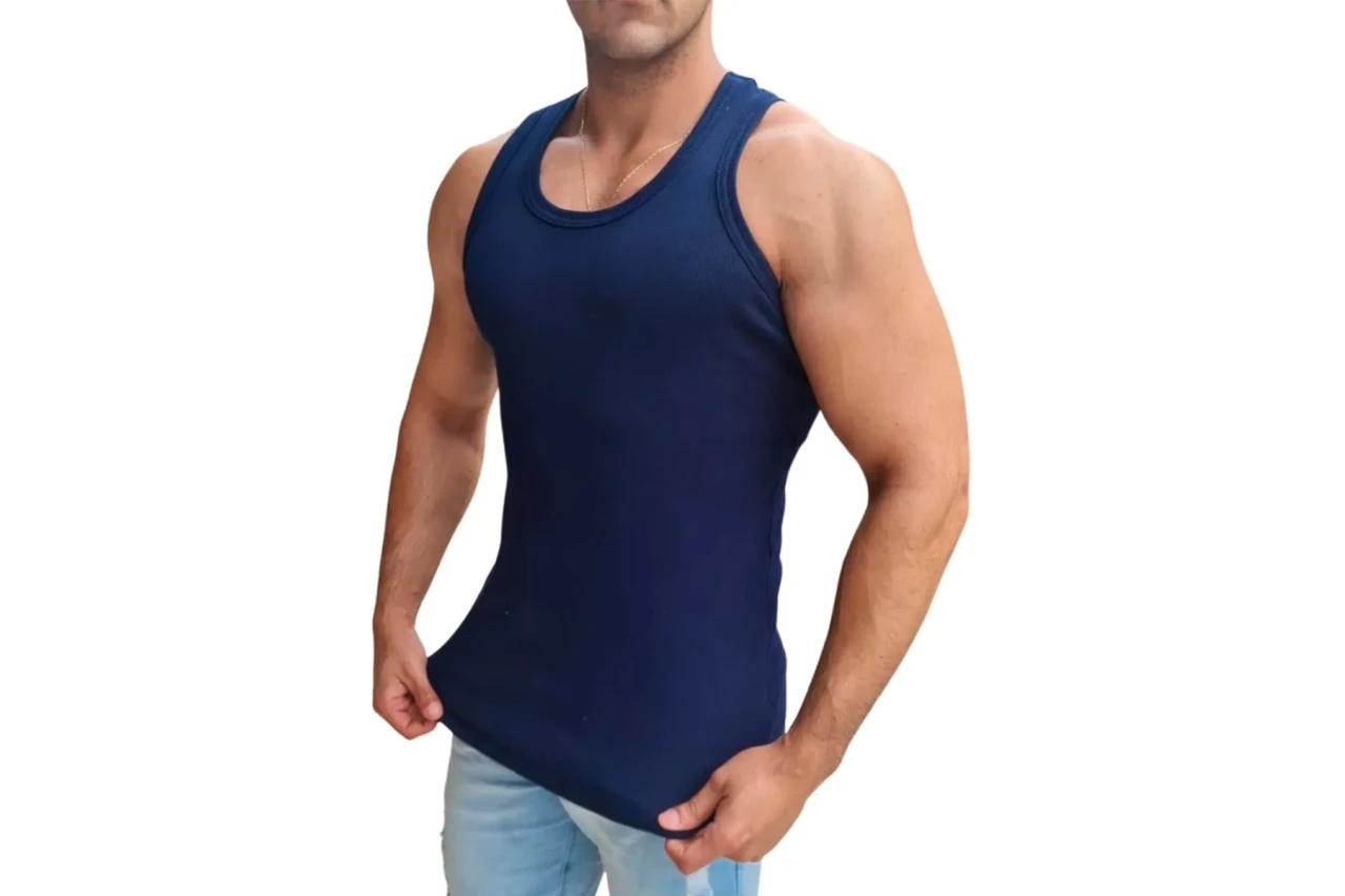 Regata Masculina Modelo Americano Fechado Canelada Algodão