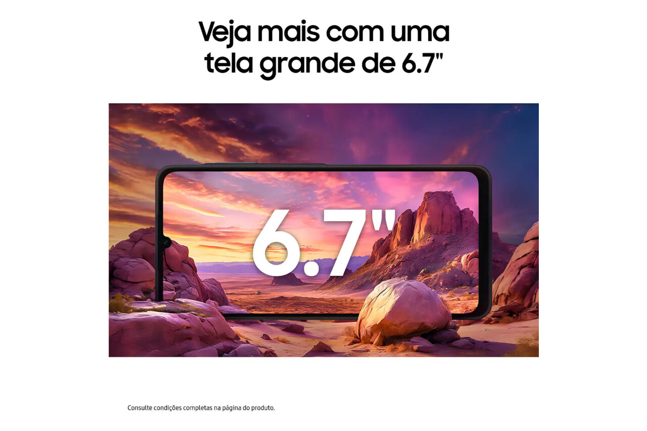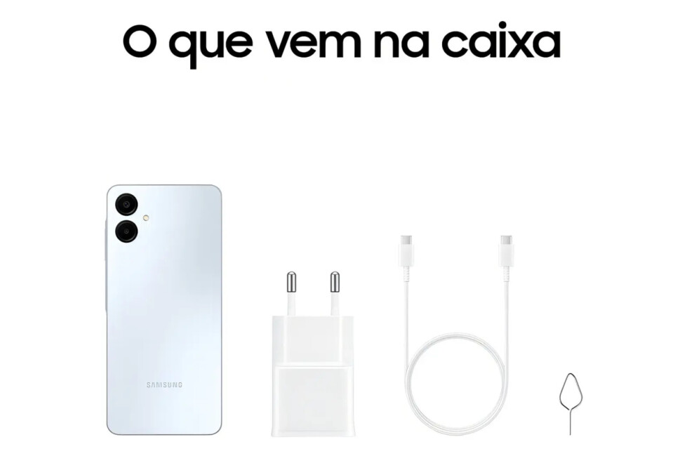 A MELOR OPÇÃO DE SMARTPHONE PARA VOCÊ! O Samsung Galaxy A06 é um smartphone de entrada que combina desempenho sólido, design moderno e recursos essenciais para o uso diário. Lançado oficialmente no Brasil em agosto de 2024, este modelo está disponível em cores como verde-claro, azul escuro e branco, atendendo a diferentes preferências estéticas. -------------------------- Especificações Técnicas Tela: PLS LCD de 6,7 polegadas com resolução HD+ (720 x 1600 pixels), oferecendo uma experiência visual ampla e confortável para navegação e consumo de conteúdo. Processador: MediaTek Helio G85 octa-core (2x 2.0 GHz Cortex-A75 e 6x 1.8 GHz Cortex-A55), garantindo desempenho eficiente para tarefas cotidianas e jogos leves. Memória RAM: 4 GB, com a tecnologia RAM Plus, que utiliza parte do armazenamento interno para expandir a memória virtual, melhorando a multitarefa. Armazenamento Interno: 128 GB, expansível até 1 TB via cartão microSD, proporcionando amplo espaço para aplicativos, fotos e vídeos. Traseira: Câmera principal de 50 MP com abertura f/1.8 e foco automático, acompanhada de uma câmera de profundidade de 2 MP com abertura f/2.4. Frontal: Câmera de 8 MP com abertura f/2.0, ideal para selfies de boa qualidade. Vídeo: Gravação em Full HD a 60 fps, proporcionando vídeos nítidos e estáveis. Bateria: 5.000 mAh, com suporte a carregamento rápido de 25W, garantindo autonomia para um dia inteiro de uso intenso. Sistema Operacional: Android 14 com interface One UI 5.1, oferecendo uma experiência de usuário fluida e recursos atualizados. Conectividade: Dual SIM (Nano-SIM, dual stand-by), 4G LTE, Wi-Fi 802.11 a/b/g/n/ac, Bluetooth 5.3, GPS, USB Tipo-C 2.0. Segurança: Leitor de impressão digital lateral para desbloqueio rápido e seguro. Design e Construção O Galaxy A06 apresenta um design moderno com acabamento em plástico, disponível nas cores verde-claro, azul escuro e branco. Com dimensões de 167,3 x 77,3 x 8 mm e peso de 189 gramas, oferece um manuseio confortável